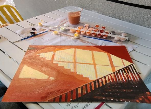 丽湖校区紫罗兰二楼架空层联合举办了以“校园景观”为主题的数字油画绘制活动。