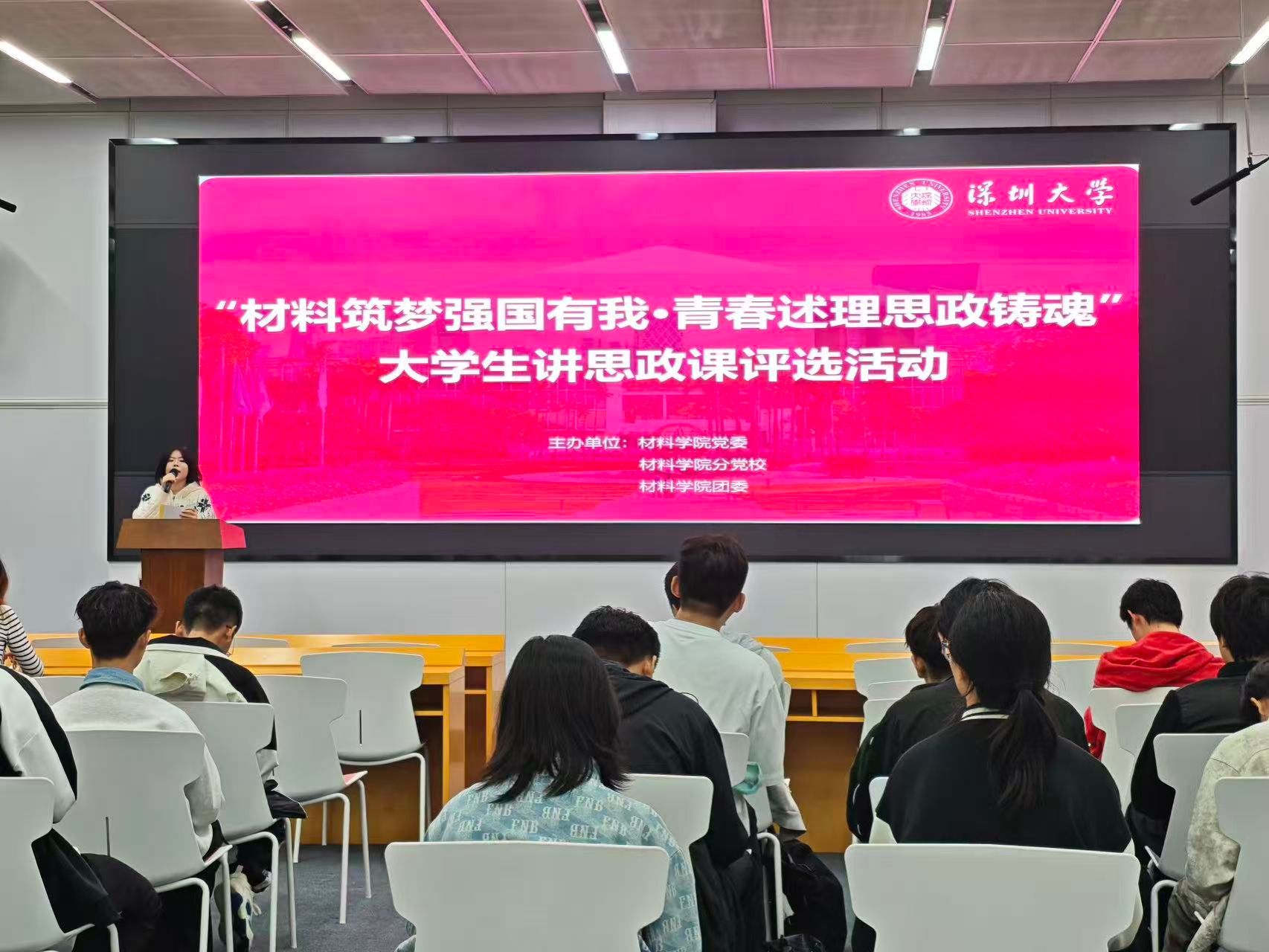 丽湖校区文韬楼236映雪厅举办“材料筑梦强国有我・青春述理思政铸魂”大性爱直播讲思政课展示活动。