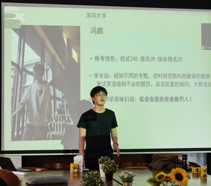 On the afternoon of March 12, 2025, our college successfully held a postgraduate entrance examination experience sharing session in Room 209 of Weipin Community. We invited several senior students who had been admitted to prestigious universities to share their experiences on the preparation for the re-examination and the precautions for the interview.